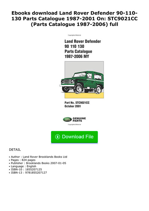 Land Rover Defender 90 110 130 Parts Catalogue 1987 2001 Pdf