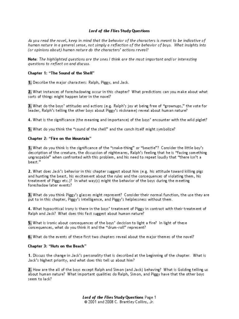 Lord Of The Flies Chapter 1 Guided Annotation Key Quotes The