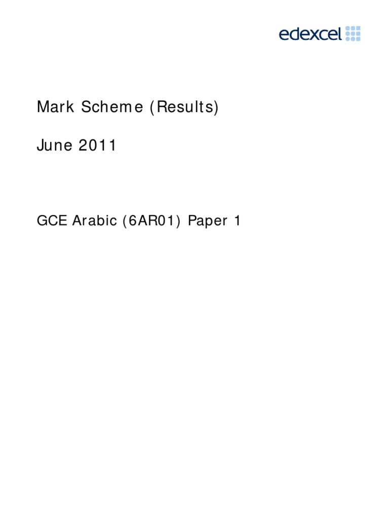 Arabic Unit 1 June 2011 Mark Scheme Further Education Business