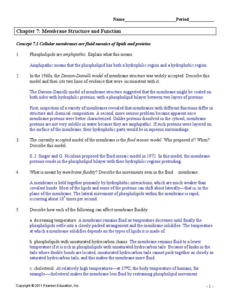 Membrane Function Pogil Answers Pdf